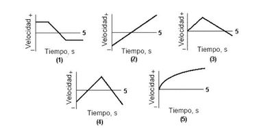 ¿Qué gráfica de v frente t describe el movimiento de una patícula cuya velocidad es constante y negativa?