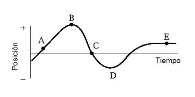 En una gráfica que muestra la posición en el eje de ordenadas y el tiempo en el de abscisas, una curva pparabólica que se abre hacia arriba representa