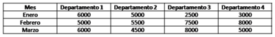 Una compañía realizó una investigación para conocer la cantidad de barriles de petróleo producidos por las ciudades de cuatro departamentos del país, en tres meses del año, y obtuvo los resultados que se muestran en la tabla.