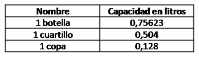 En la tabla se relacionan antiguas medidas españolas de capacidad para los vinos.