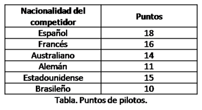 En la tabla están los puntos obtenidos por los competidores en un campeonato. Solamente los que tengan un puntaje superior al promedio de puntos competirán en una carrera que define al campeón.