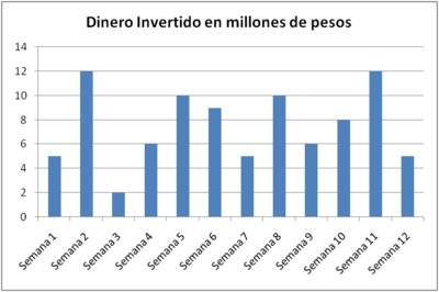 Una persona analiza el precio de las acciones de una empresa y de acuerdo con ello invierte semanalmente. La gráfica muestra un registro de las inversiones de las últimas 12 semanas.