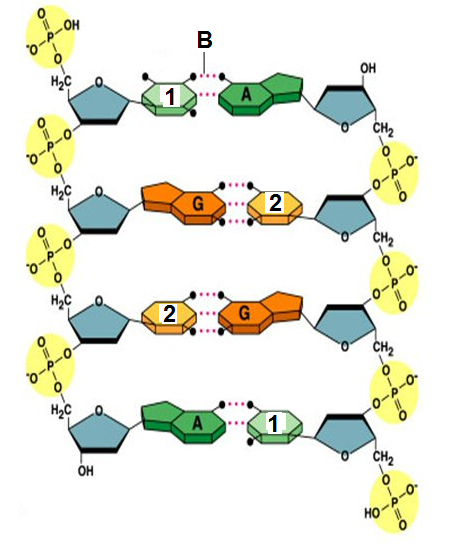 Identifique las partes de la molécula de ADN que se indican con los círculos de color naranja en este esquema.