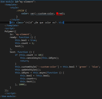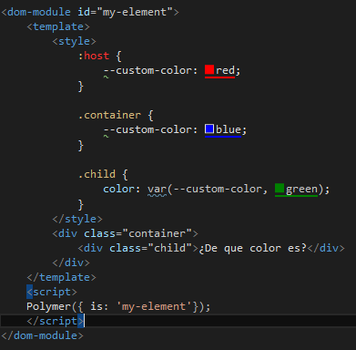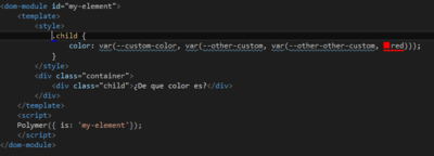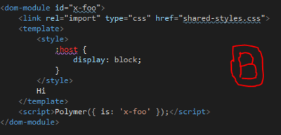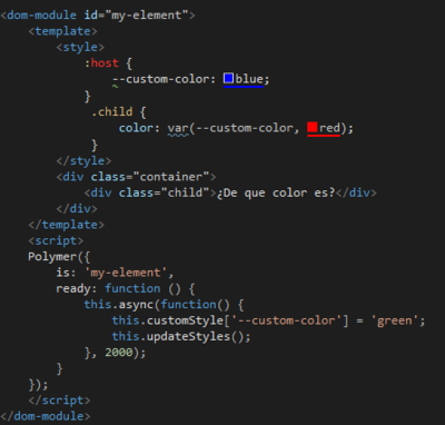 Polymer utiliza las reglas de estilo Shadow DOM para proporcionar un estilo al local DOM del elemento. Los estilos deben proporcionarse mediante etiquetas <style>.