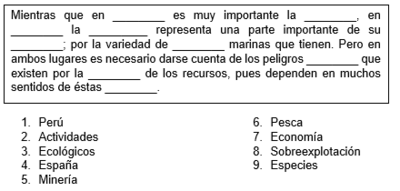¿Cuál de las opciones presenta los números con el orden correcto para completar el párrafo?