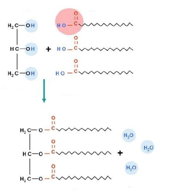 El oxígeno del agua que se desprende en un enlace éster proviene: