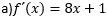 Resuelve la siguiente derivada: f(x)=4x^2+x+1/2