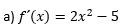 Resuelve la siguiente derivada: f(x)=(2x-1)(x+5)
