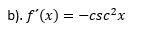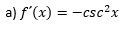 Encuentra las derivadas de las siguientes funciones. Selecciona la letra que tiene la respuesta correcta:
