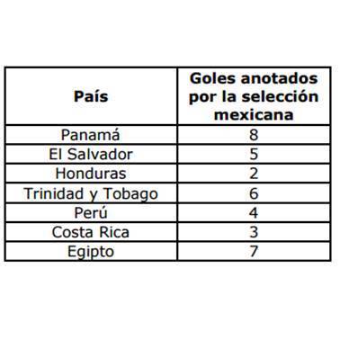 La siguiente tabla muestra una relación de goles anotados por la selección mexicana de futbol a otras elecciones: