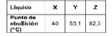 En una mezcla líquida homogénea de tres sustancias (X, Y, Z) se desean separar sus componentes. Si el criterio para la separación es el punto de ebullición a 1 atmósfera de presión, como lo muestra la tabla; se puede determinar que el procedimiento más adecuado para este proceso es:
