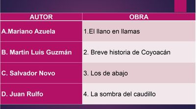 Selecciona la respuesta que relaciona correctamente los autores de la novela de la Revolución Mexicana con sus obras correspondientes
