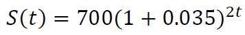 Se invirtieron $700 en una financiera que paga una tasa de interés del 7% anual. Suponga que la financiera le respeta dicha tasa de interés permitiendo que haga la inversión semestralmente.