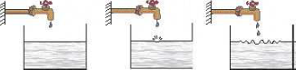 Una llave de agua gotea continuamente como muestran las figuras. La perturbación que se produce en el punto donde cae la gota se propaga a lo largo de la superficie del agua. En esta situación, se puede afirmar que: