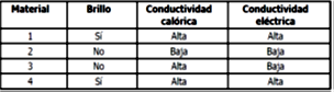 Luego, Andrés realiza el mismo experimento utilizando 4 láminas de distintos materiales en lugar del vidrio. La siguiente tabla presenta algunas propiedades de los materiales de las láminas: