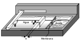 La cubeta que se muestra en la figura se usa para realizar un experimento con ondas. La cubeta tiene dos secciones separadas por una fina membrana. Una sección tiene agua y una barrera con una pequeña ranura. Sobre la cubeta hay una esfera que oscila verticalmente y toca levemente el agua, dicha esfera puede moverse sobre la cubeta.