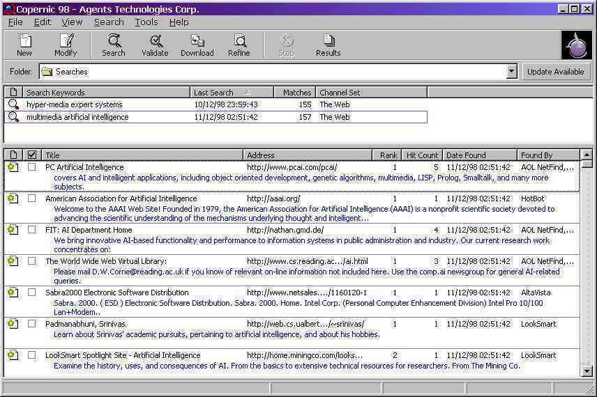 El primer multibuscador se creó en 1998, el cual fue llamado "Copernic 98".