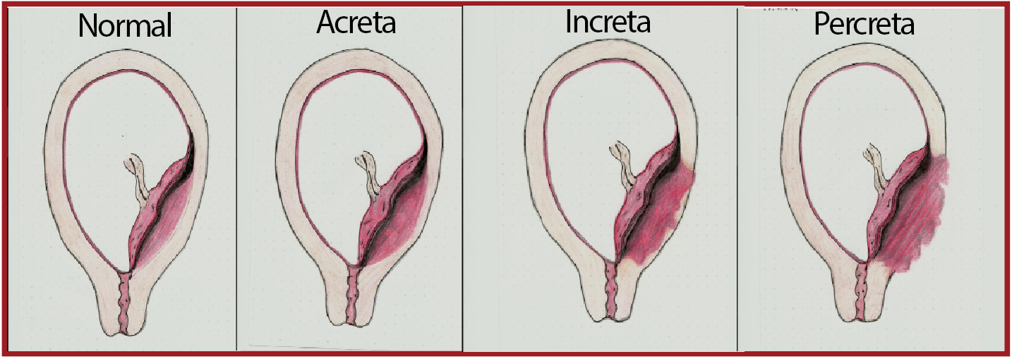 Acreta: ligadura de arterias uterinas e histerectomia (riesgo elevado)