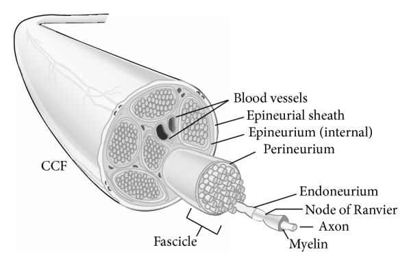 del nervio interno, incluidos los tubos endoneurales, la lámina basal y la laminina, permanece intacta, lo que facilita la regeneración axona