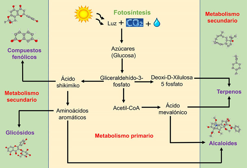 Ejemplo: cocaína en las hojas de la coca (específico) y la cafeína en el té, café y otras especies (inespecífico).