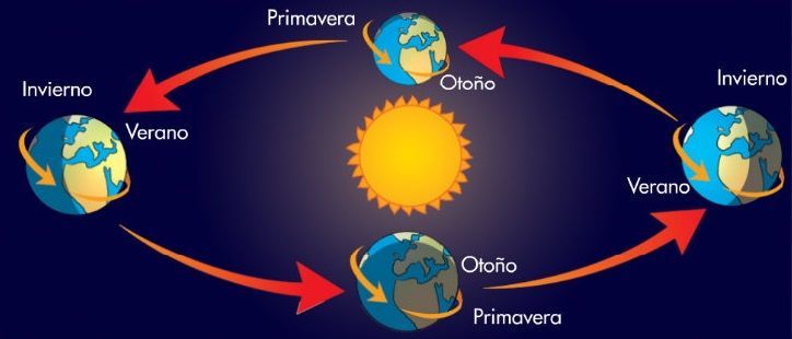 Por el movimiento de traslación la Tierra se mueve alrededor del Sol, impulsada por la gravitación, en 365 días, 5 horas y 57 minutos, equivalente a 365,2422 días, que es la duración del año.