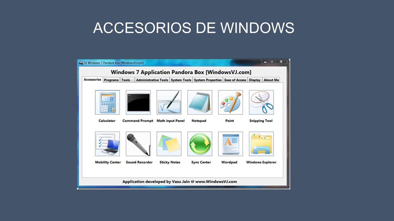 Los accesorios del sistema operativo Windows son una serie de aplicaciones que estas incluidas en Windows con la finalidad de aprovechar ampliamente los recursos de la computadora.