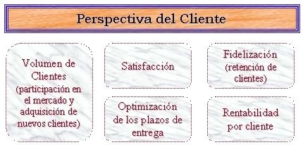 Se centra en la satisfacción y fidelización de los clientes, se concentra en los aspectos como los segmentos de mercado, la imagen de la marca, el valor añadido a los clientes con los productos y servicios, usa indicadores como la participación o cuota de mercado y el porcentaje de retención de clientes. (ISOTools, 2015)