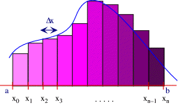Las sumas de Riemann son un método para aproximar el área total bajo la gráfica de una curva. Llevadas al límite se obtiene la integral de Riemann. Sea f(x) una función continua en [a, b]. Sea un conjunto finito de puntos {x0, x1, x2,...xn} tales que a= x0<x1<x2...<xn = b.consideramos la partición de este intervalo P= {[x0, x1), [x1, x2), ... [xn-1, xn]}.Entonces la suma de Riemann de f(x) es sumatoria de f(y1)(xi-xi-1)donde xi-1 ≤ yi ≤ xi. La elección de yi en este intervalo suele ser arbitraria.