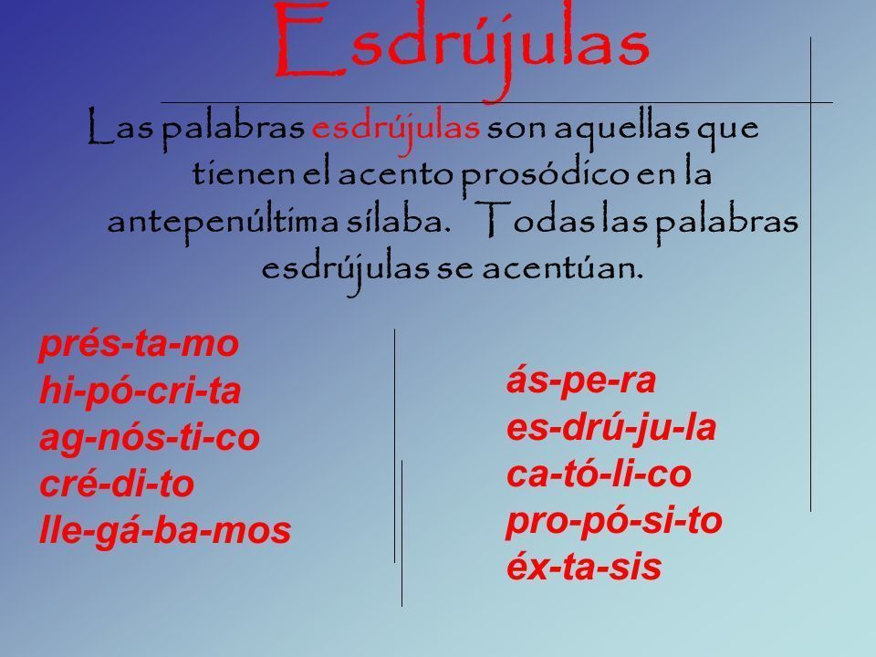 Algunas palabras llevan un tilde identificando el acento ortográfico.