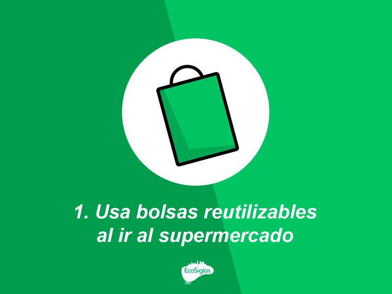 Las bolsas plásticas están fabricadas a base de productos derivados del petróleo, y pueden tardar medio siglo en degradarse. Si todos adoptamos la práctica de usar bolsas ecológicas, bien sea reutilizar las que ya tenemos en casa, o utilizando bolsas de tela al hacer las compras reduciríamos la necesidad de fabricación de bolsas plásticas sustancialmente, un proceso que a su vez consume grandes cantidades de energía