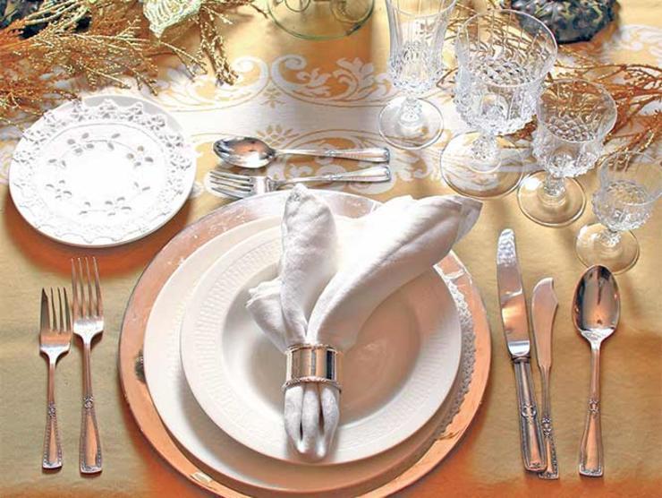 El tenedor se sostiene con la mano izquierda todo el tiempo, con las púas hacia abajo. En la mano derecha se sostiene el cuchillo, con el filo hacia abajo. Además de servir para cortar la carne, éste ayuda a colocar los alimentos sobre el tenedor. Algunos alimentos, como el arroz, pueden apilarse en el tenedor o bien darse la vuelta a éste momentáneamente y, usándolo como cuchara, recogerlos con ayuda del cuchillo. En ambos casos, los cubiertos deben colocarse en forma angular, no paralela, porque al levantar los codos se molesta a los vecinos de mesa.