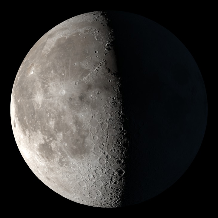 Durante esta fase está iluminada la mitad del disco lunar; el lado derecho en el hemisferio norte y el lado izquierdo en el hemisferio sur. Es observable desde el mediodía hasta la medianoche, y ya durante la puesta del Sol se ve alta en el cielo. Durante el cuarto creciente, la Luna recorre entre 90 y 135° de su órbita. La parte visible de la Luna es entre 35%-65% o sea, en algún momento se ve media Luna iluminada durante esta fase
