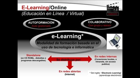 Significa un entorno de producción de conocimiento mas colaborativo en el que los usuarios son los responsables de la generación del contenido.El e-learning 3.0 Se espera que el E-learning 3.0 proporcione nuevas opciones a partir de una nueva web y plataformas inteligentes y personalizadas por el alumno. B-learning el aprendizaje mixto El Blended learning consiste en un proceso docente de carácter semipresencial, es decir el formato de los cursos incluye tanto clases de carácter presencial como actividades e-learning.