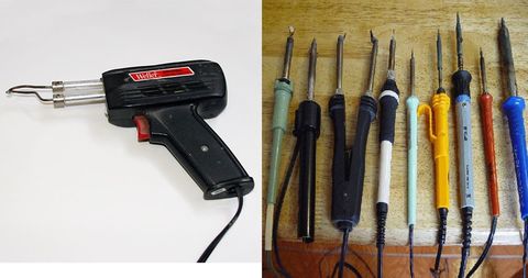 Soldador de resistencia: la punta de cobre se calienta con una resistencia eléctrica, lo que la mantiene a una temperatura constante. Puede tener forma de martillo, punta, varilla u otras formas, en función del uso a que esté destinado.