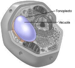 Vacuola vegetal: son de gran tamaño con contenido ácido, cuya membrana se denomina tonoplasto. Funciones: mantenimiento de la turgencia, incremento de la superficie celular y por tanto capacidad de intercambio con el exterior, y almacén de reserva.