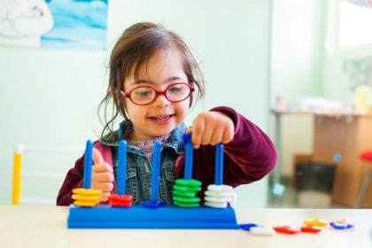 Todos los niños precisan de estímulos para el correcto desarrollo de sus capacidades motrices, cognitivas, emocionales y adaptativas. Los niños con SD no son una excepción, aunque sus procesos de percepción y adquisición de conocimientos son algo diferentes a los del resto de la población: Las capacidades visuales de los niños con SD son, por ejemplo, superiores a las auditivas, y su capacidad comprensiva es superior a la de expresión, por lo que su lenguaje es escaso y aparece con cierto retraso, aunque compensan sus deficiencias verbales con aptitudes más desarrolladas en lenguaje no verbal, como el contacto visual, la sonrisa social o el empleo de señas para hacerse entender. La atonía muscular determina también diferencias en el desarrollo de la habilidad de caminar, o en la motricidad fina. Todos esos aspectos deben ser contemplados en programas específicos de atención temprana (durante los primeros seis años de vida) para estimular al máximo los mecanismos adaptativos y de aprendizaje más apropiados.