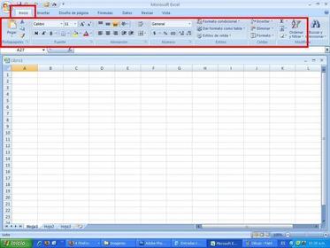 de opciones y el área de trabajo de la hoja. Esta barra despliega los datos o