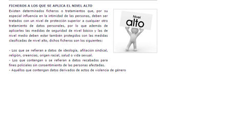 de dato y el nivel de protección que requiere dicho dato, ante esto el dato por
