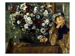 DEGAS ES UN PINTOR ESCÉPTICO DE LA BONDAD DE LA VIDA SU ARTE REVELA A UN HOMBRE PESIMISTA.MUJER CON CRISANTEMOS ES UNA BRILLANTE COMPOSICIÓN EXCÉNTRICA Y ENIGMÁTICA DONDE EL RETRATO DE LA MUJER ES ALEJADO ALA ORILLA QUE MIRA ALGO LEJANO Y FAMILIAR.REPRESEN A UNA PERSONA CAPAZ DE PENSAR Y ACTUAR