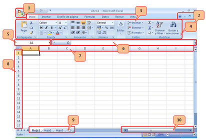 1. Botón de Office (Abrir, guardar, imprimir, etc.)