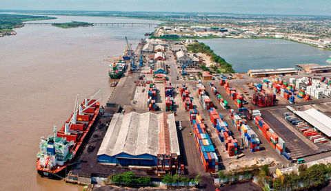 Caption: : En 1936 se inagura el terminal marítimo y fluvial de la ciudad, a 22 km de la desembocadura del río Magdalena, la Puerta de Oro de Colombia.