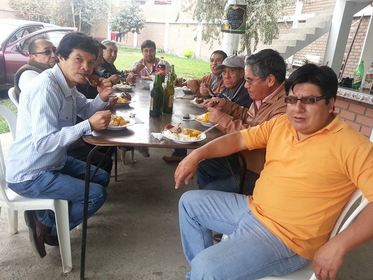 degustando un sabroso cuy al estilo matarino con unos amigos en el club de la matarina.