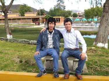 Caption: : con mi hijo en un paseo por los baños en cajamarca perú