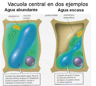 Una vacuola es un orgánulo celular presente en todas las células de plantas. También aparece en algunas células procariotas y eucariotas. Las vacuolas son compartimentos cerrados o limitados por la membrana plasmática ya que contienen diferentes fluidos, como agua o enzimas, aunque en algunos casos puede contener sólidos como por ejemplo azúcares, sales, proteínas y otros nutrientes. La mayoría de las vacuolas se forman por la fusión de múltiples vesículas membranosas. El orgánulo no posee una forma definida, su estructura varía según las necesidades de la célula en particular