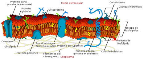 Caption: : En todas las células, la membrana plasmática actúa como una barrera de permeabilidad que impide la entrada de los materiales no deseados del medio extracelular y la salida de los metabolitos necesarios