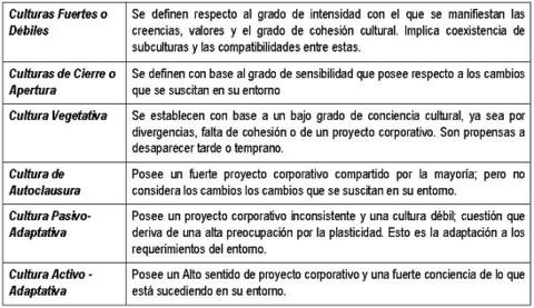 Caption: : Es posible encontrar otras tipologías de cultura de acuerdo diferentes aspectos que son reconocidos a partir de diversos comportamientos organizacionales.