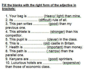 ADJECTIVES - COMPARATIVE AND SUPERLATIVE FORMS