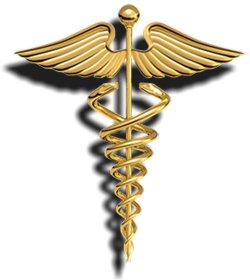 Caption: : Caduceu - símbolo da medicina. No caduceu, o bastão representa o centro do mundo, a árvore da sabedoria na qual a serpente do gênese se enrolou para oferecer a maçã do conhecimento do bem e do mal para Eva. A cobra representa, devido sua capacidade de trocar a pele, a renovação, a mestria no renascimento, ela é respeitada como imagem de sabedoria, pois tanto pode ser remédio como "veneno", com poder de curar ou matar.