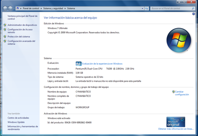 Se puede ver las propiedades del sistema de la siguiente manera: Configuración panel de control Sistema y seguridad Sistema (ver la cantidad de memoria RAM y la velocidad del procesador)