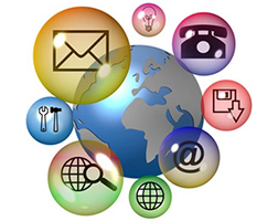 inmediata, sincrónica y asíncrona, para difundir información y contactar con cualquier persona o institución del mundo mediante la edición y difusión de información en formato web, el correo electrónico, los servicios de mensajería inmediata, los fórums telemáticos, las videoconferencias, los blogs y las wiki...